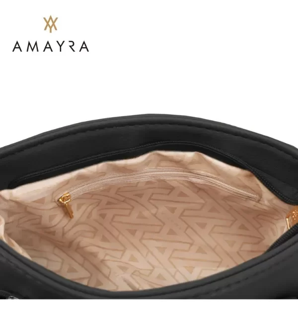 Cartera de la marca Amayra con un diseño elegante y minimalista, ideal para acompañar tanto looks casuales como más formales. Destaca por su solapa frontal con costuras decorativas en forma geométrica que aportan un detalle visual atractivo. Incluye una correa ajustable que permite llevarla al hombro o cruzada, brindando comodidad y versatilidad. Su interior está diseñado para ofrecer un espacio funcional que facilita la organización de objetos personales. Las medidas de esta cartera son 29 cm de ancho, 19 cm de alto y 9 cm de profundidad, proporcionando una excelente capacidad sin perder su estilo sofisticado.