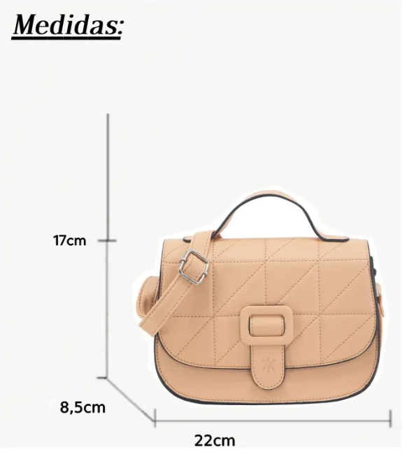 Medidas: 22 cm de ancho, 16 cm de alto y 8 cm de profundidad. Tamaño práctico para llevar lo esencial con estilo y comodidad.