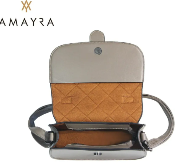 Cartera de la marca Amayra con diseño acolchado de estilo clásico y detalles contemporáneos. Ideal para quienes buscan elegancia y practicidad en el uso diario.