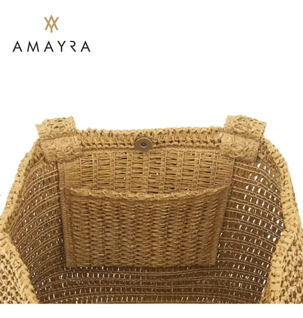 Estos bolsos Amayra están confeccionados en rafia tejida con un estilo artesanal que combina ligereza y resistencia. Los modelos incluyen asas anchas o manijas trenzadas para mayor comodidad, junto con detalles en ecocuero que realzan su diseño. Su formato espacioso de 40 x 36 x 10 cm los convierte en la elección ideal para acompañar looks de verano, llevar a la playa o usar en el día a día con practicidad y estilo.