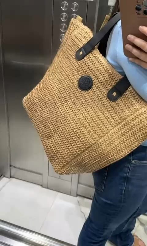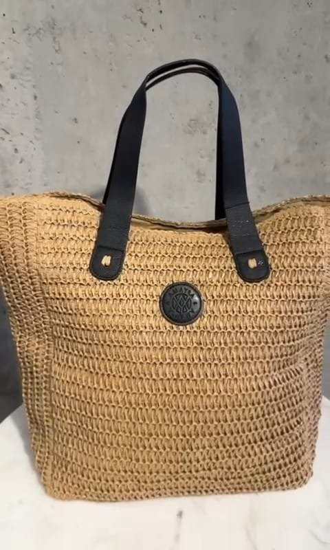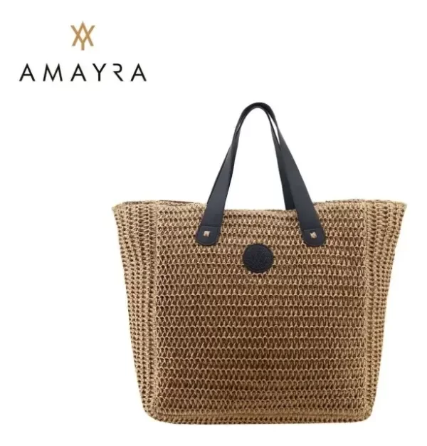 Bolso Amayra de formato amplio con diseño tejido en toda su superficie, ideal para combinar practicidad con estilo. Posee asas largas en material reforzado para llevar al hombro con comodidad y un aplique circular con logo en relieve en el frente que aporta un detalle distintivo. Su interior espacioso lo convierte en un accesorio versátil para el uso diario, perfecto para completar looks casuales con un aire moderno y natural.