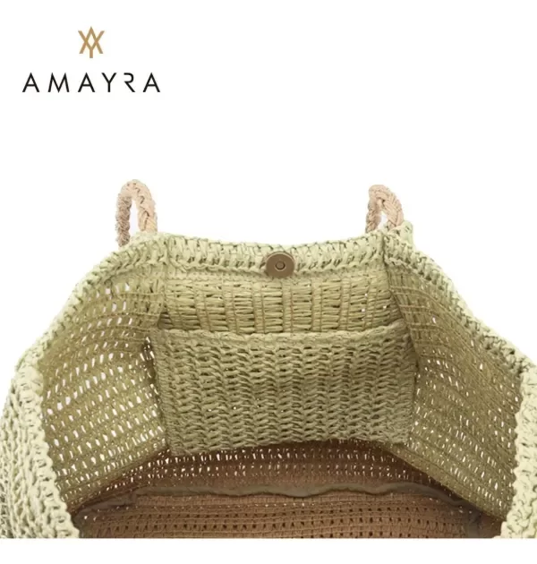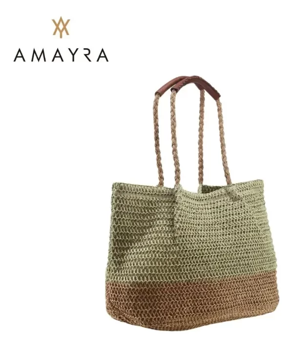 Los bolsos Amayra combinan practicidad y estilo en diseños de rafia trenzada. Incluyen modelos calados de formato rectangular con asas anchas integradas, ideales para llevar con comodidad, y versiones bicolor con base reforzada y manijas trenzadas que aportan un toque artesanal. Su tamaño de 40 x 36 x 10 cm resulta perfecto para acompañar el día a día, salidas de verano o uso en la playa, ofreciendo ligereza y espacio a la vez.