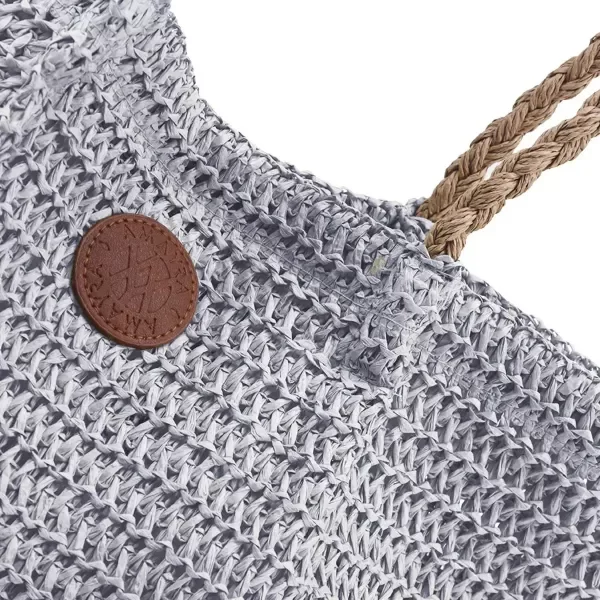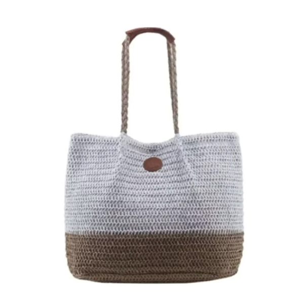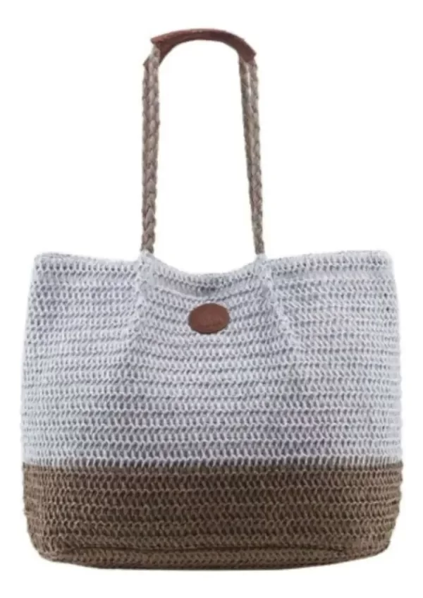 Cartera Playero De Rafia Amayra Combinados Moda Celeste Claro Con Marrón