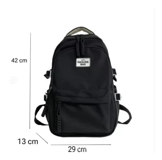 Esta mochila presenta un diseño moderno y funcional, con múltiples compartimentos de cierre que permiten una organización eficiente de objetos personales. En la parte frontal, cuenta con dos cremalleras verticales y detalles decorativos de cuerda trenzada. También incorpora hebillas plásticas como elementos de diseño. En un costado, lleva un llavero de felpa con forma de animal, lo que añade un toque divertido y personalizable al accesorio. Sus correas son ajustables, lo que garantiza comodidad durante su uso prolongado. Ideal para el uso diario, escolar o actividades recreativas.