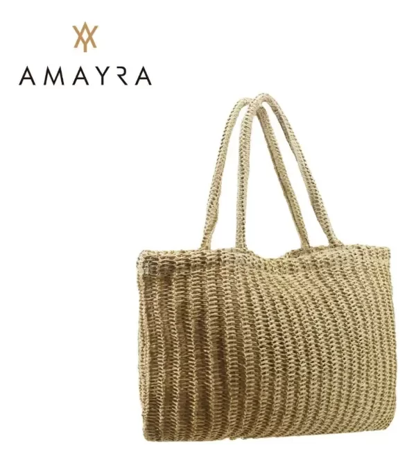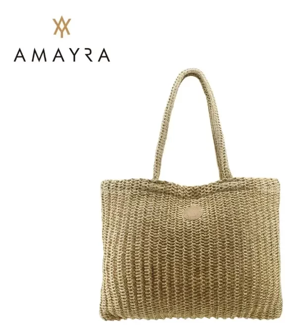 Los bolsos Amayra están confeccionados en rafia tejida con un diseño liviano y resistente. Su formato rectangular amplio ofrece espacio suficiente para el uso diario o salidas de verano. Cuentan con asas de buen largo para llevar al hombro con comodidad y detalle frontal en ecocuero que identifica la marca. Con sus medidas de 40 x 36 x 10 cm, se convierten en una opción práctica y versátil para acompañar cualquier ocasión.
